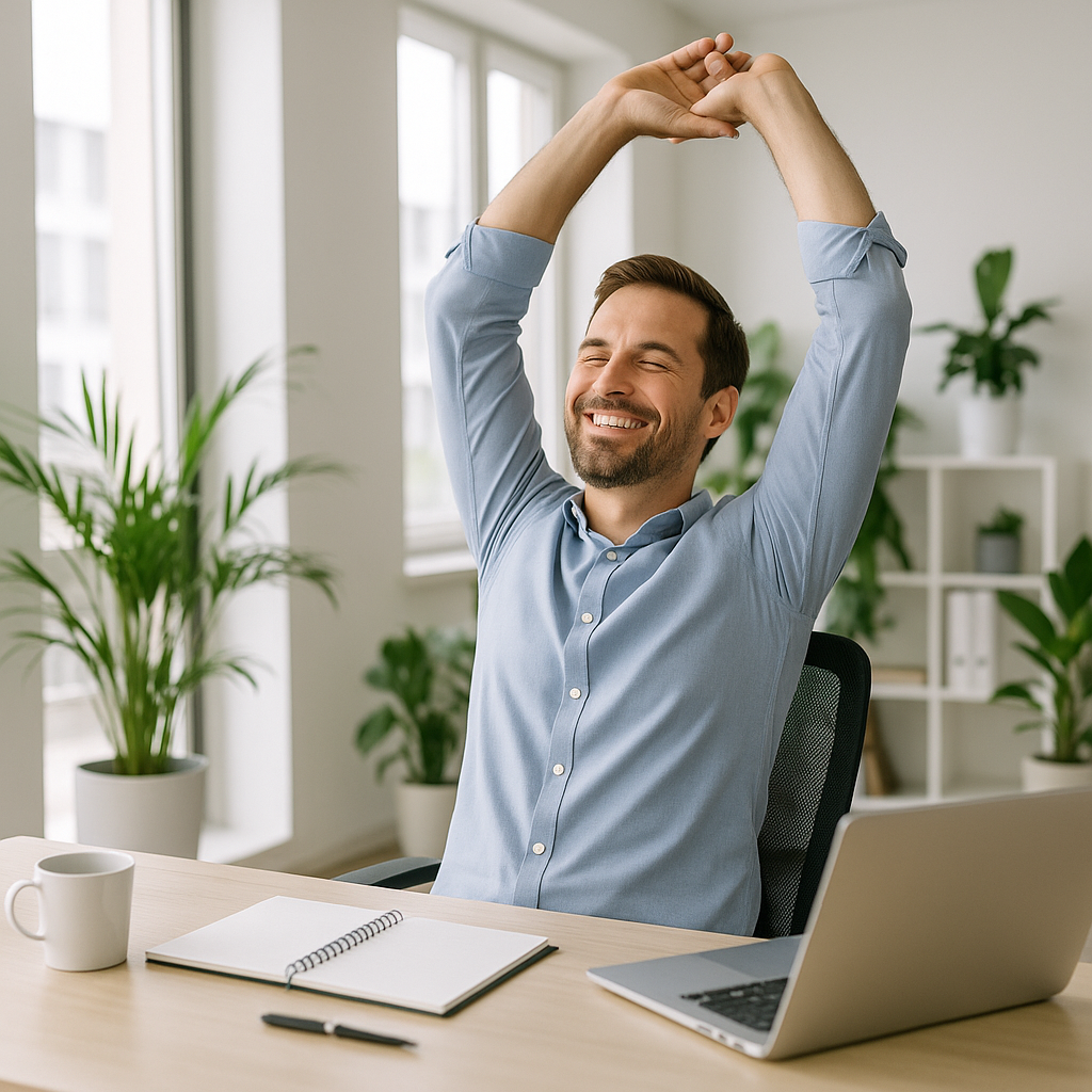 Upptäck hur enkla rörelser under arbetsdagen kan minska stress, öka fokus och förbättra din hälsa – utan att ta tid från din vardag.